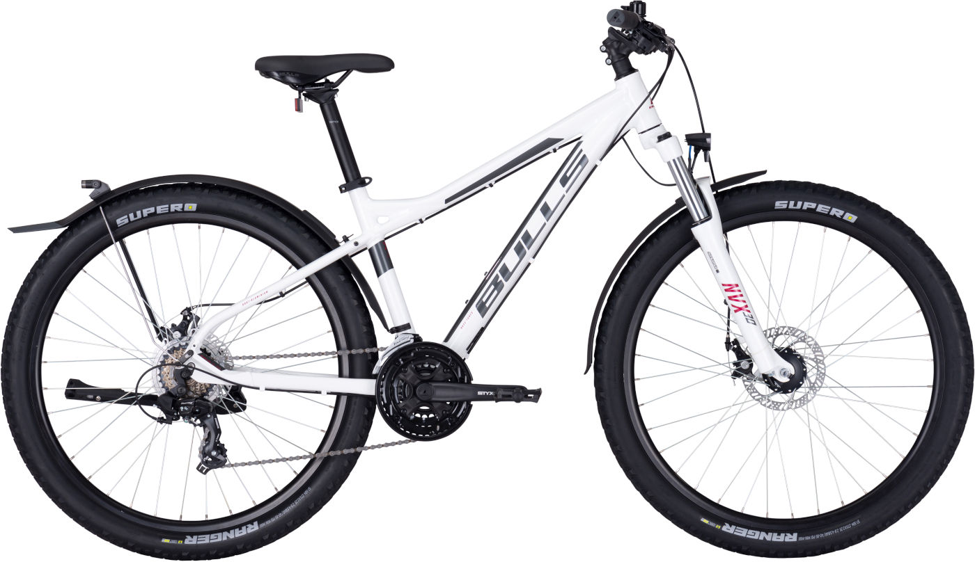 Die SR SUNTOUR NVX-30 Federgabel mit 100 mm Federweg gleicht Unebenheiten zuverlässig aus und erhöht den Fahrkomfort spürbar. In Kombination mit den 27,5-Zoll-Laufrädern entsteht ein agiles, gleichzeitig laufruhiges Fahrverhalten. Die SUPERO Ranger Anti-Puncture Bereifung (27.5 x 2.25) bietet guten Grip und zusätzlichen Pannenschutz.