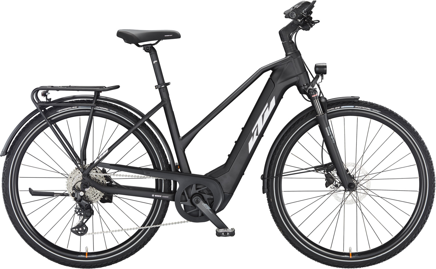 Willkommen in der Welt des E-Trekking, in der du mit dem 'KTM Power Sport 10' ein unvergleichliches Fahrerlebnis genießen wirst. Dieses E-Trekkingbike vereint modernste Technologie mit erstklassigem Design und bietet dir alles, was du für deine Abenteuer auf zwei Rädern brauchst. Kraftvoller Bosch Performance Line CX Smart System AntriebErlebe ungebremste Leistung mit dem Bosch Performance Line CX Smart System Antrieb. Dieses kraftvolle System unterstützt dich mit bis zu 85 Nm Drehmoment und sorgt für eine dynamische und kraftvolle Beschleunigung. Egal ob steile Anstiege oder lange Touren – du meisterst jede Strecke mühelos und mit maximalem Fahrspaß. Bosch PowerTube Akku mit 625 Wh KapazitätMit dem integrierten Bosch PowerTube Akku, der eine beeindruckende Kapazität von bis zu 625 Wattstunden bietet, bist du bestens gerüstet für ausgedehnte Touren. Der Akku ist elegant im Rahmen integriert und sorgt für eine ausgewogene Gewichtsverteilung. Genieß die Freiheit, längere Strecken zu erkunden, ohne dir Sorgen über die Reichweite machen zu müssen. Präzise Shimano Deore 10G KettenschaltungDie Shimano Deore 10-Gang-Kettenschaltung ermöglicht dir präzise und geschmeidige Gangwechsel. Egal, ob du in der Stadt unterwegs bist oder abseits der Straßen neue Wege erkundest – du findest immer den passenden Gang und kannst dich auf eine zuverlässige Schaltperformance verlassen. Helle Fuxon LED-ScheinwerferSicherheit steht an erster Stelle, und die Fuxon LED-Scheinwerfer mit einer Leuchtkraft von bis zu 100 Lux sorgen dafür, dass du auch bei schlechten Lichtverhältnissen immer den Durchblick behältst. Ob bei Dämmerung, Nachtfahrten oder in dunklen Tunneln – du wirst gesehen und siehst alles klar und deutlich. Hydraulische Shimano MT200 ScheibenbremsenVerlass dich auf die hydraulischen Shimano MT200 Scheibenbremsen, die dir in jeder Situation eine optimale Bremsleistung bieten. Sie ermöglichen dir eine präzise Kontrolle und sorgen dafür, dass du sicher und souverän zum Stehen kommst, selbst bei nassen oder schlammigen Bedingungen. Praktischer KTM Light GepäckträgerFür all deine Ausrüstungen und Einkäufe bietet der KTM Light Gepäckträger ausreichend Platz und Stabilität. Egal ob du Gepäcktaschen, einen Rucksack oder andere Utensilien transportierst – der Gepäckträger ist robust und leicht zugleich, sodass du stets gut vorbereitet bist. Zuverlässige Schwalbe Marathon Mondial Performance RaceGuard BereifungMit der Schwalbe Marathon Mondial Performance RaceGuard Bereifung bist du auf allen Wegen sicher unterwegs. Diese Reifen bieten exzellenten Pannenschutz und hervorragenden Grip, sodass du auf unterschiedlichen Untergründen immer die beste Performance erlebst. Intuitives Bosch Intuvia 100 LCD-DisplayDas Bosch Intuvia 100 LCD-Display zeigt dir alle wichtigen Informationen auf einen Blick. Von der Geschwindigkeit über die zurückgelegte Strecke bis hin zum Akkustand – du behältst stets den Überblick. Das Display ist intuitiv zu bedienen und macht dein Fahrerlebnis noch angenehmer. Mit dem 'KTM Power Sport 10' bist du für jede Herausforderung gerüstet. Genieße die Freiheit und den Komfort, den dir dieses erstklassige E-Trekkingbike bietet, und entdecke die Welt auf eine neue, aufregende Art und Weise. Ob auf der täglichen Pendelstrecke oder bei abenteuerlichen Touren in der Natur – das KTM Power Sport 10 wird dich begeistern. |