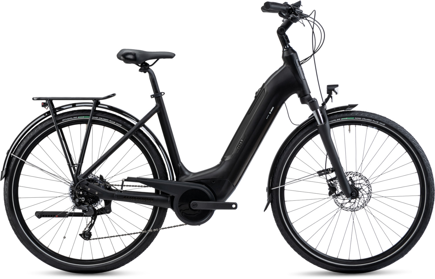 | Mit dem TRIA 9 bietet Ihnen WINORA eine komplett überarbeitete Version des Vorgängers und die ideale Mischung aus komfortablem E-Bike und sportlichem Tourenbike. Die gesamte Rahmenkonstruktion des TRIA 9 wurde komplett neu entwickelt. Der tiefe und breite Einstieg bietet Ihnen viel Bewegungsfreiraum und einen bequemen Auf- und Abstieg. Dank des winkelverstellbaren Vorbaus haben Sie die Möglichkeit, Ihre bevorzugte Sitzposition im Handumdrehen anzupassen. Der kraftvolle Bosch Active Line Plus Motor, mit einem Drehmoment von bis zu 50 Newtonmetern, unterstützt Sie mit einem sportlichen Antritt bei steilen Anstiegen. Der leistungsstarke Bosch PowerTube Akku, mit einer Kapazität von 500 Wattstunden, liefert Ihnen genügend Energie für alltägliche Strecken und gemütliche Touren mit Freunden oder der Familie. Die Shimano Alivio 9-Gang Kettenschaltung ist einfach zu bedienen und ermöglicht Ihnen zügige und präzise Gangwechsel. Für eine zuverlässige Bremsleistung sorgen die hydraulischen Shimano MT200 Scheibenbremsen, welche sich gut dosieren lassen, kräftig zugreifen und das Rad schnell und sicher zum Stehen bringen. Entspanntes Fahrvergnügen über Kopfsteinpflaster und holprige Gründe wird Ihnen dank der Kombination aus SR Suntour NEX E25 Federgabel mit 63 Millimetern Federweg und der gefederten Sattelstütze geboten, welche Unebenheiten auf Ihren Strecken sanft abmildert. Zusätzlichen Fahrkomfort auf ausgedehnten Touren bieten Ihnen Komfort-Komponenten wie ein bequemer Selle Royal Sattel, ergonomisch geformte Lenkergriffe und ein stabiler Systemgepäckträger. Die Road Cruiser Bereifung von Schwalbe sorgt für ein laufruhiges und angenehmes Fahrverhalten. Das Bosch Intuvia LCD-Display ist intuitiv bedienbar und liefert Ihnen gut ablesbar relevante Fahrdaten zu Leistung und Verbrauch. Darüber hinaus lassen sich über das Display die vier verschiedenen Unterstützungsstufen anwählen. Praktische Details wie eine LED-Lichtanlage, Eurofender Schutzbleche und Hinterbauständer runden die komfortable Ausstattung des TRIA 9 ab. |