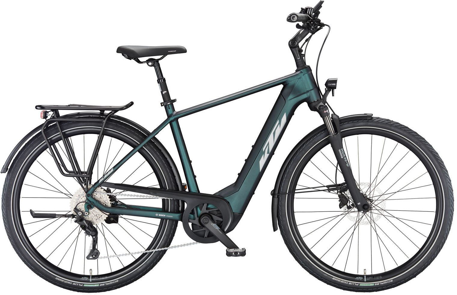 Leistung und TechnologieMit dem Bosch Performance Line CX Smart System bist du perfekt für die digitale Zukunft gerüstet. Der kraftvolle Motor unterstützt dich bei jeder Fahrt und sorgt für ein dynamisches Fahrerlebnis.Die intuitive EBIKE FLOW APP verbindet dich mit deinem Bike und bietet eine Vielzahl von Funktionen, um deine Fahrten noch angenehmer zu gestalten. Komfort und DesignDer robuste Aluminiumrahmen des Macina Tour CX ML vereint Stabilität mit Leichtigkeit. Für optimalen Fahrkomfort sorgen der höhenverstellbare Vorbau und die gefederte Sattelstütze, die sich individuell an deine Bedürfnisse anpassen lassen. Die bewährte KTM Rahmengeometrie wurde beibehalten, um dir auch bei längeren Touren ein angenehmes Fahrgefühl zu bieten. Dank der innovativen PowerTube Top Loader (PTTL) Technologie ist das Entfernen und Wiedereinsetzen des Akkus einfacher denn je. Schaltung und BremsenMit der Shimano Deore 10-Gang Kettenschaltung erlebst du präzise und sanfte Schaltvorgänge, selbst unter hoher Last. Die speziell für E-Bikes entwickelte LINK GLIDE-Technik von Shimano sorgt für eine bis zu drei Mal längere Lebensdauer der Schaltkomponenten. Die hydraulischen Shimano Scheibenbremsen garantieren dir maximale Sicherheit und Kontrolle, auch bei hohen Geschwindigkeiten und in anspruchsvollem Gelände. Sicherheit und Reifen